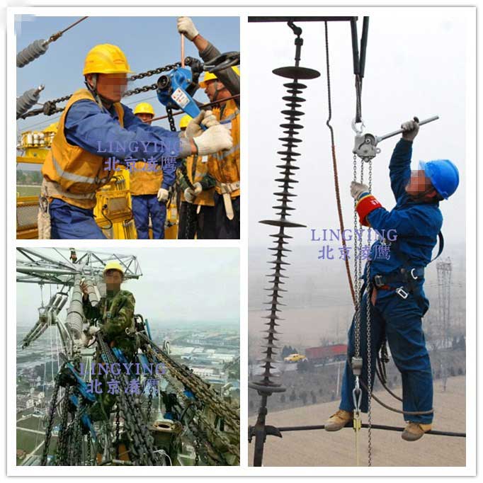 在電力行業中,手扳葫蘆主要起的作用是線路拉緊的作用,一般在電力架線、電力維修中使用廣泛,如下圖:
